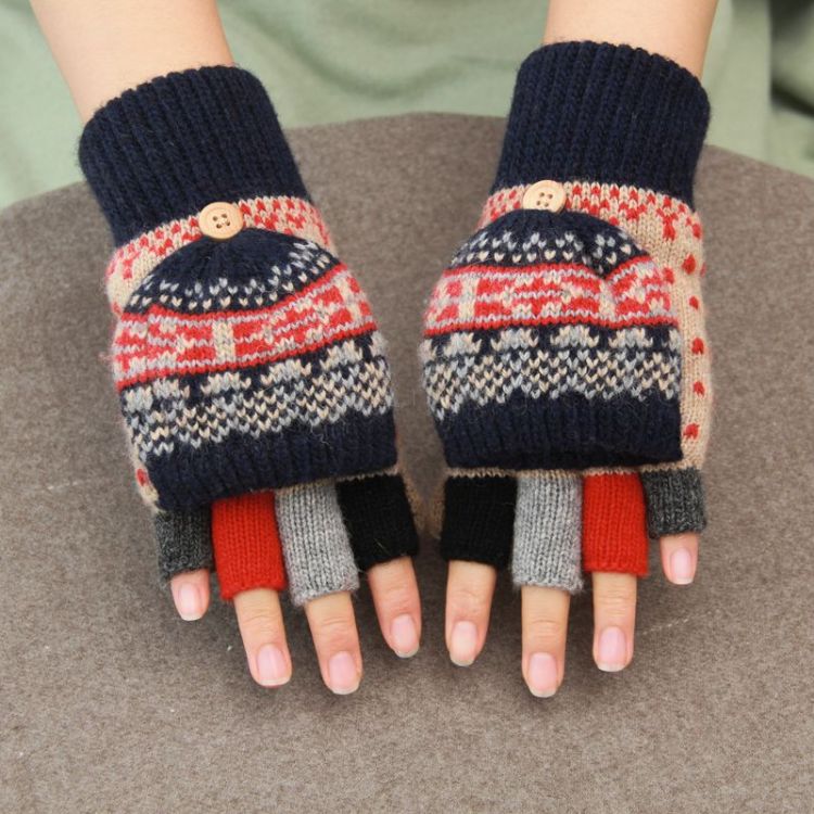 - 冬天冷,奶奶给每个孙辈们都织过一双或者几双毛线手套。为了能写字的时候也不冻着。手套是两用的,上面有个小帽子,后面还有一个扣子扣着。写字的时候帽子脱下来,可以握笔;平时就把帽子带上来可以护住手指头。就像这样的: