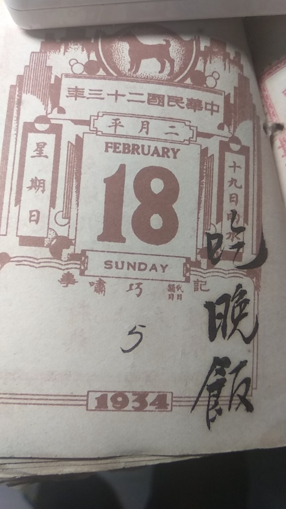 父亲留给强松的珍贵遗物:朱漆沙木盒和亲笔字迹1934年日历 作者韻鬼子2021年2月24日2021年2月25日发表在慎终追远 日历可进博物馆了,都是珍贵文物,万幸有存,妥善保存! 分享到: 点击以分享到 X(在新窗口中打开) X 点击分享到 Facebook (在新窗口中打开) Facebook 点击以打印(在新窗口中打开) 打印 点击通过电子邮件将链接发送给朋友(在新窗口中打开) 电子邮件 赞 正在加载…… 相关