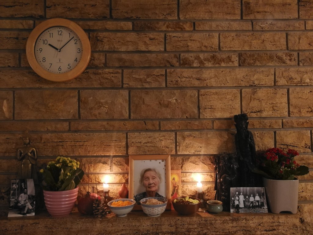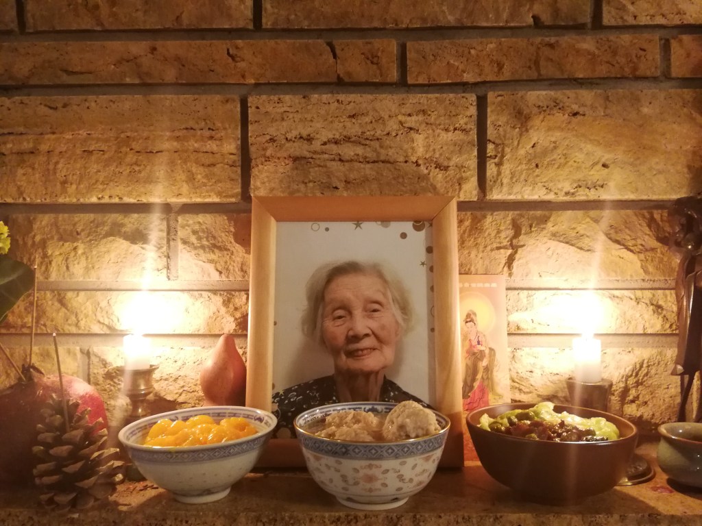 五七3月9日是出嫁的孙女主祭,特意添了鲜花摆在下面,把祭桌上都换上了长寿花。早上祭的是女儿煎的鸡蛋,豆浆。午饭是毛豆烩羊肉、清炒生菜、涼拌黃瓜。荸薺是獅子頭冬瓜湯, 女儿做的水果布丁。