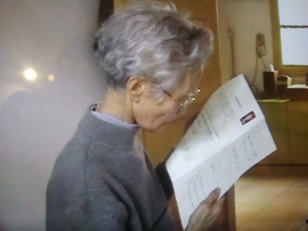 奶奶要洗手,韻要陪她去,她說不用,韻堅持要陪。洗完手,奶奶就像八十三視頻裡閱讀捐獻書那樣微駝著背,給韻寫下了 五、六條養生的經驗。
